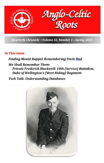 Anglo-Celtic RootsThe Spring 2026 ACR is on the website for members to view. The issue with mailed copies has been resolved. We apologize for the delay. Deadline for the summer issue is 22 April. Consider sharing one of your family stories! |